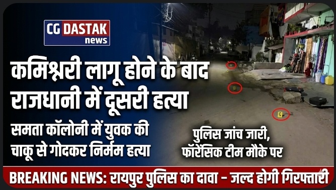 रायपुर। राजधानी रायपुर में कमिश्नरी व्यवस्था लागू होने के बाद दूसरी हत्या की सनसनीखेज वारदात सामने आई है। यह घटना आजाद चौक थाना क्षेत्र के समता कॉलोनी, अर्जुन नगर की है, जहां एक युवक की चाकू से गोदकर बेरहमी से हत्या कर दी गई। घटना से इलाके में दहशत का माहौल है।