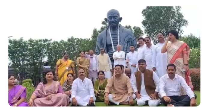 गांधी प्रतिमा के सामने कांग्रेस विधायकों का प्रदर्शन