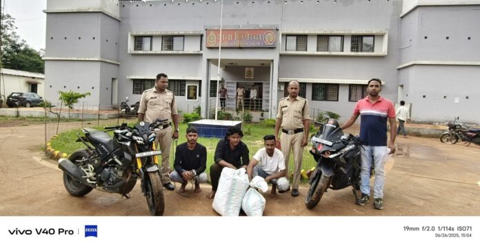 26 जून को मुखबिर से मिली सूचना पर पुलिस ने छुरा रोड में की नाकेबंदी. जांच में दो बाइक सवारों से भारी मात्रा में गांजा और मोबाइल बरामद हुआ।