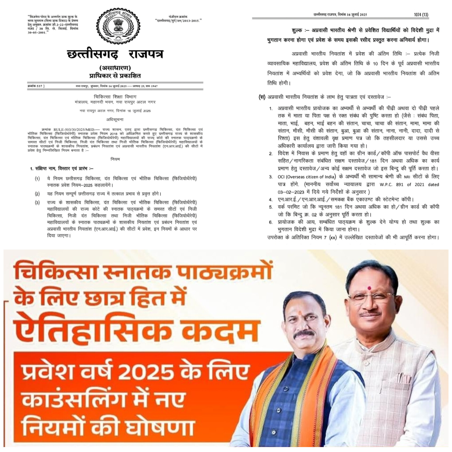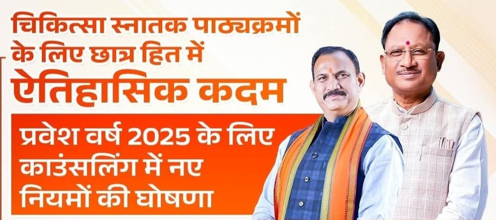 छत्तीसगढ़ सरकार का यह फैसला न केवल एक नियम है, बल्कि शिक्षा में सच्चाई और नैतिकता की जीत है। मुख्यमंत्री श्री विष्णु देव साय और स्वास्थ्य मंत्री श्री श्याम बिहारी जायसवाल की पहल से छत्तीसगढ़ मेडिकल शिक्षा में पूरे देश के लिए एक आदर्श मिसाल बनता जा रहा है।