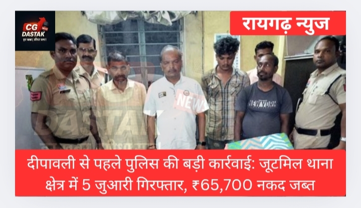 दीपावली से पहले पुलिस की बड़ी कार्रवाई: जूटमिल थाना क्षेत्र में 5 जुआरी गिरफ्तार, ₹65,700 नकद जब्त