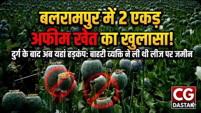 गौरतलब है कि इससे पहले दुर्ग जिले में भी करोड़ों रुपये की अवैध अफीम की खेती का मामला सामने आया था, जिसके बाद अब बलरामपुर में मिली अफीम की फसल ने प्रशासन की चिंता और बढ़ा दी है।
