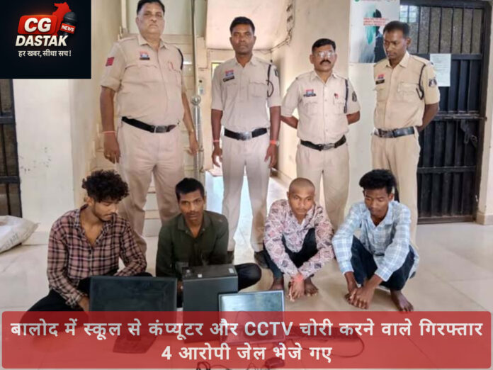 बालोद में स्कूल से कंप्यूटर और CCTV चोरी करने वाले गिरफ्तार — 4 आरोपी जेल भेजे गए