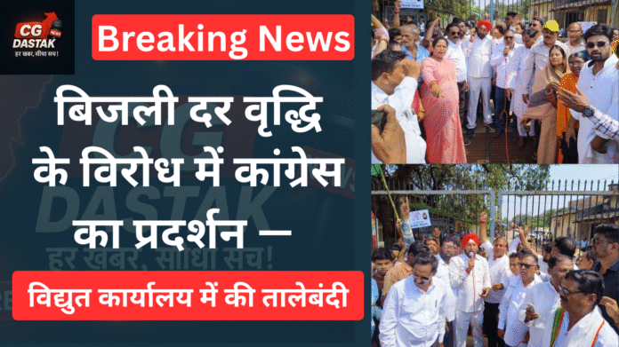 राजनांदगांव। बिजली दरों में बढ़ोतरी के खिलाफ कांग्रेस पार्टी ने सोमवार को कैलाश नगर स्थित विद्युत कार्यालय के बाहर जोरदार प्रदर्शन किया। इस दौरान कांग्रेस कार्यकर्ताओं ने भाजपा सरकार के खिलाफ नारेबाजी करते हुए कार्यालय में तालेबंदी कर दी।