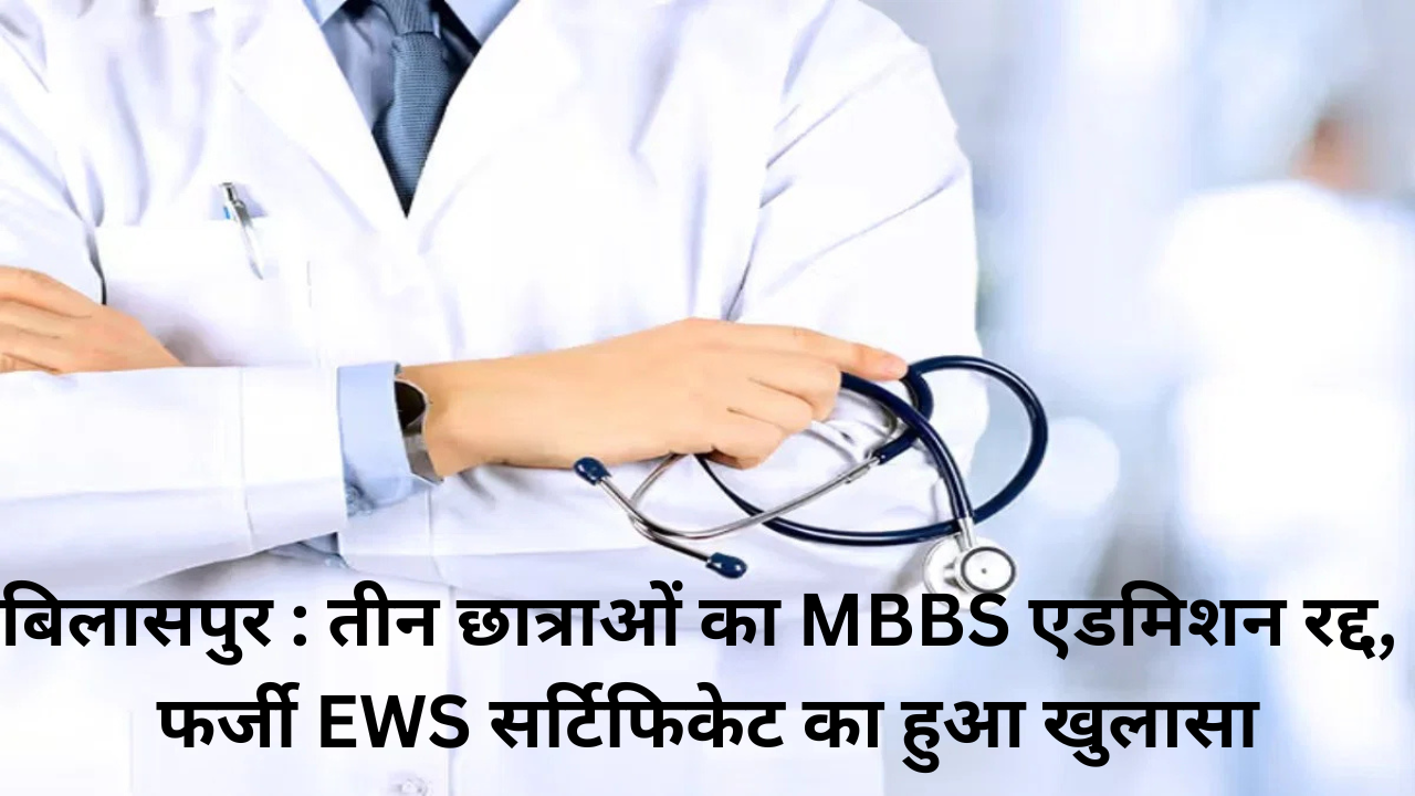 रायपुर/बिलासपुर। छत्तीसगढ़ के बिलासपुर में मेडिकल कॉलेज में दाखिला लेने वाली तीन छात्राओं का MBBS Admission निरस्त कर दिया गया है। इन छात्राओं ने आर्थिक रूप से कमजोर वर्ग (EWS) कोटे के तहत दाखिला लिया था, लेकिन तहसील कार्यालय की जांच में उनके EWS प्रमाणपत्र फर्जी पाए गए।