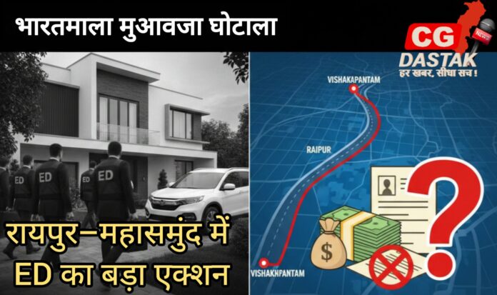 छत्तीसगढ़ में भारत माला प्रोजेक्ट मुआवजा घोटाले को लेकर प्रवर्तन निदेशालय (ED) ने सोमवार तड़के रायपुर और महासमुंद में बड़ी कार्रवाई की है। ईडी की टीमों ने हरमीत खनूजा समेत उनके सहयोगियों और संबंधित अधिकारियों के ठिकानों पर एक साथ छापेमारी की।