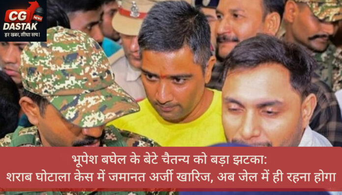रायपुर। छत्तीसगढ़ के बहुचर्चित शराब घोटाला मामले में पूर्व मुख्यमंत्री भूपेश बघेल के बेटे चैतन्य बघेल को ईडी की विशेष अदालत से बड़ा झटका लगा है। कोर्ट ने उनकी जमानत याचिका खारिज कर दी है, जिसके बाद अब चैतन्य को जेल में ही रहना होगा।