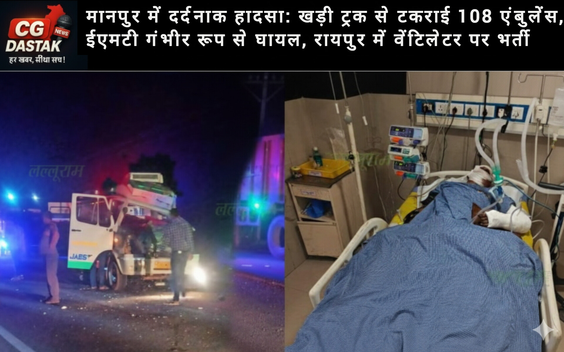 मानपुर में दर्दनाक हादसा: खड़ी ट्रक से टकराई 108 एंबुलेंस, ईएमटी गंभीर रूप से घायल, रायपुर में वेंटिलेटर पर भर्ती