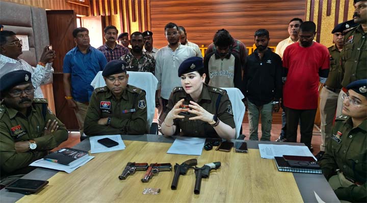 पकड़े गए आरोपियों में शिवम सिन्हा उर्फ चार्ली, दिगंबर साहू उर्फ छोटू, सेवक कश्यप उर्फ डाला और गुंजेश वर्मा उर्फ शिवा शामिल हैं। तलाशी के दौरान शिवम के पास से एक पिस्टल और जिंदा कारतूस तथा दिगंबर साहू के पास से एक देशी कट्टा बरामद किया गया। आरोपियों के खिलाफ धारा 111 बीएनएस और 25, 27 आर्म्स एक्ट के तहत मामला दर्ज किया गया।