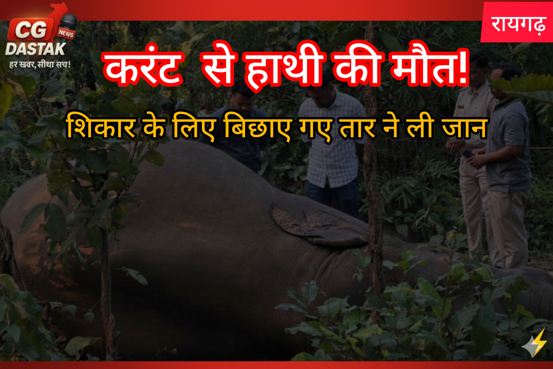 रायगढ़ में करंट की चपेट में आने से हाथी की मौत, शिकार के लिए बिछाए गए तार ने ली जान, पूर्व जनपद सदस्य के पति समेत 3 गिरफ्तार