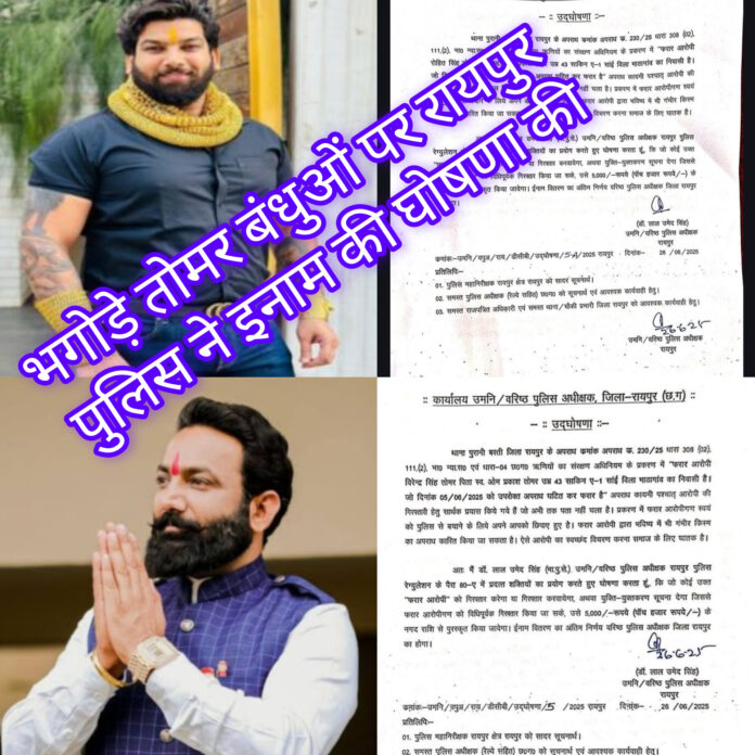 रायपुर पुलिस ने हिस्ट्रीसिटर तोमर बंधुओ पर रखा इनाम, जानकारी देने वाले को मिलेगा ₹5000
