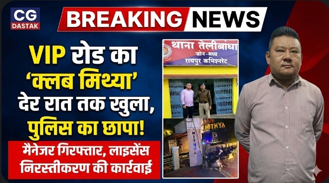 रायपुर: समय सीमा के बाद खुला मिला क्लब मिथ्या, मैनेजर गिरफ्तार, लाइसेंस निरस्तीकरण की कार्रवाई