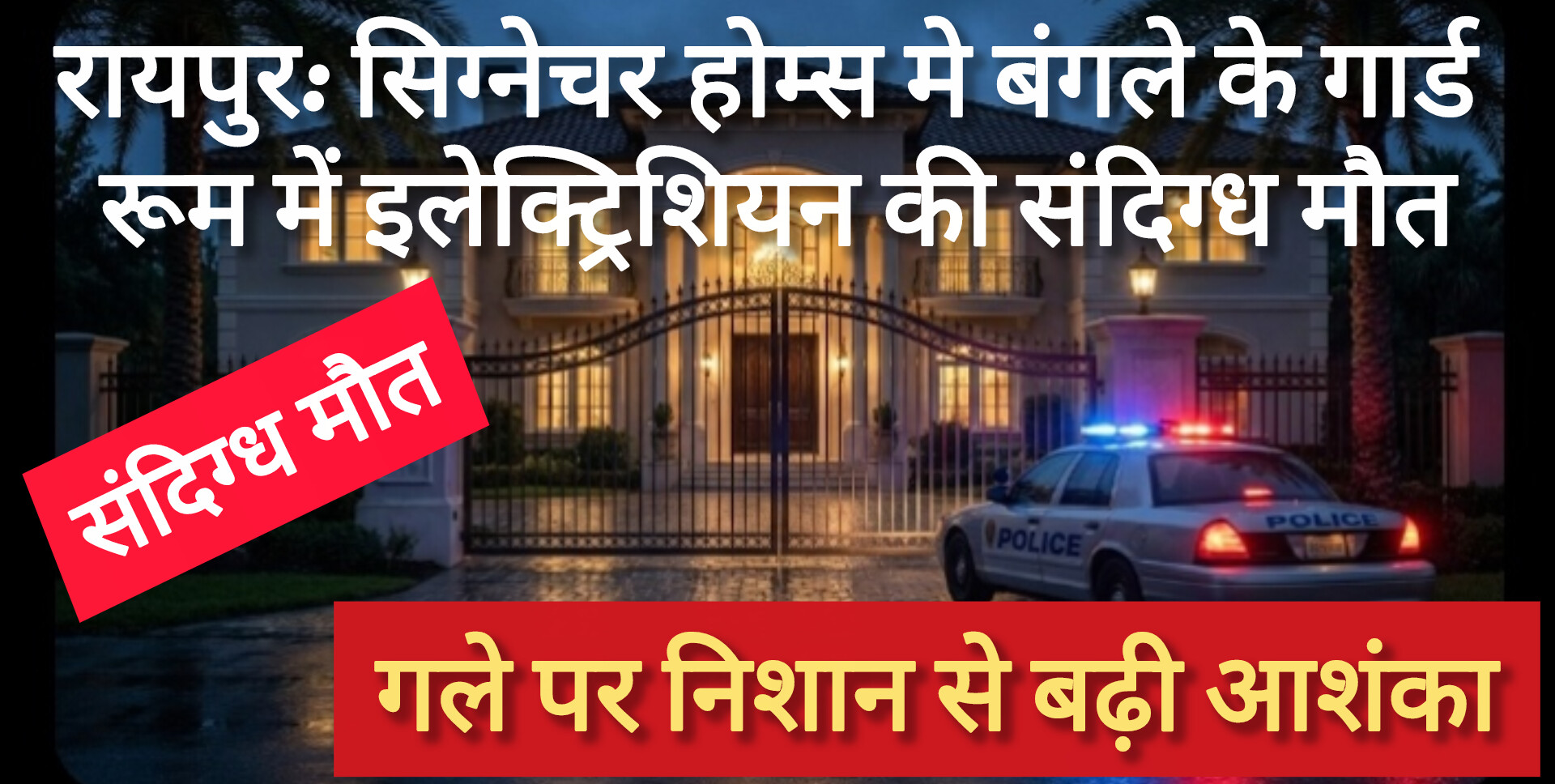 जानकारी के अनुसार, खुबलाल यादव सिग्नेचर होम्स में विपिन अग्रवाल के यहां इलेक्ट्रिशियन का काम करता था और अपने परिवार के साथ वहीं परिसर में रहता था। मृतक की पत्नी ने बताया कि गुरुवार शाम करीब 7 बजे उसने खाना बनाने के लिए कहा था, लेकिन वह घर नहीं लौटा। पत्नी के अनुसार, वह कई बार रात में बंगलो के गार्ड रूम में ही सो जाया करता था।