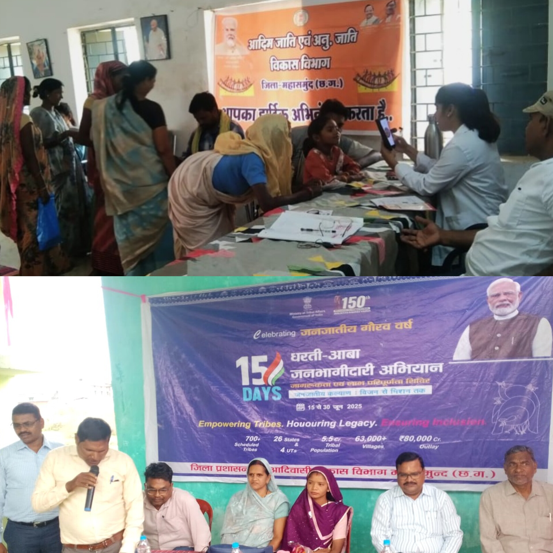 महासमुंद — आदिवासी समुदाय के समग्र विकास और सरकारी योजनाओं की पहुँच अंतिम व्यक्ति तक सुनिश्चित करने के उद्देश्य से महासमुंद जिले में धरती आबा जनजातीय ग्राम उत्कर्ष अभियान के अंतर्गत सेवा एवं जागरूकता शिविरों का आयोजन किया जा रहा है। यह शिविर 17 जून से 30 जून 2025 तक विभिन्न पंचायतों में आयोजित हो रहे हैं।