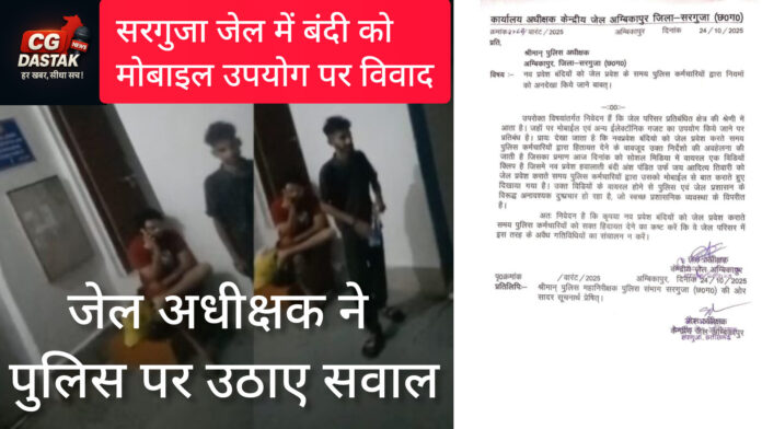 छत्तीसगढ़ के सरगुजा जिले की केंद्रीय जेल में बंदी को मोबाइल फोन इस्तेमाल की अनुमति मिलने का मामला चर्चा में है। जेल अधीक्षक अक्षय राजपूत ने इस घटना पर नाराजगी जताते हुए जिला पुलिस अधीक्षक राजेश अग्रवाल को पत्र लिखा है और पुलिस की कार्यप्रणाली पर गंभीर सवाल खड़े किए हैं।