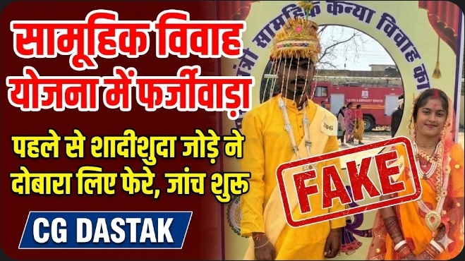 कांकेर। मुख्यमंत्री सामूहिक कन्या विवाह योजना के तहत आयोजित सामूहिक विवाह समारोह में एक बड़ा फर्जीवाड़ा सामने आया है। पहले से विवाहित एक जोड़े ने योजना का लाभ लेने के लिए दोबारा शादी कर ली। सोशल मीडिया पर तस्वीरें वायरल होने के बाद मामला उजागर हुआ, जिससे सत्यापन प्रक्रिया पर गंभीर सवाल खड़े हो गए हैं।