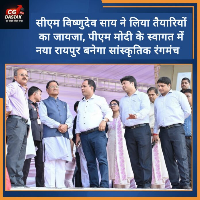 छत्तीसगढ़ स्थापना दिवस के अवसर पर प्रधानमंत्री नरेंद्र मोदी के स्वागत की भव्य तैयारियां रायपुर में जोरों पर हैं। मुख्यमंत्री विष्णुदेव साय ने शुक्रवार को नवा रायपुर स्थित राज्योत्सव स्थल और अन्य कार्यक्रम स्थलों का निरीक्षण किया। उन्होंने मुख्य मंच, पार्किंग क्षेत्र, विभागीय डोम, प्रदर्शनी दीर्घा, वीआईपी दीर्घा और आमजन के लिए बनाए गए मार्गों की समीक्षा करते हुए अधिकारियों को समय-सीमा में तैयारी पूरी करने के निर्देश दिए। साय ने कहा कि राज्योत्सव छत्तीसगढ़ की संस्कृति, उपलब्धियों और आत्मविश्वास का उत्सव है, इसलिए इसका आयोजन उत्कृष्टता की नई मिसाल बने।