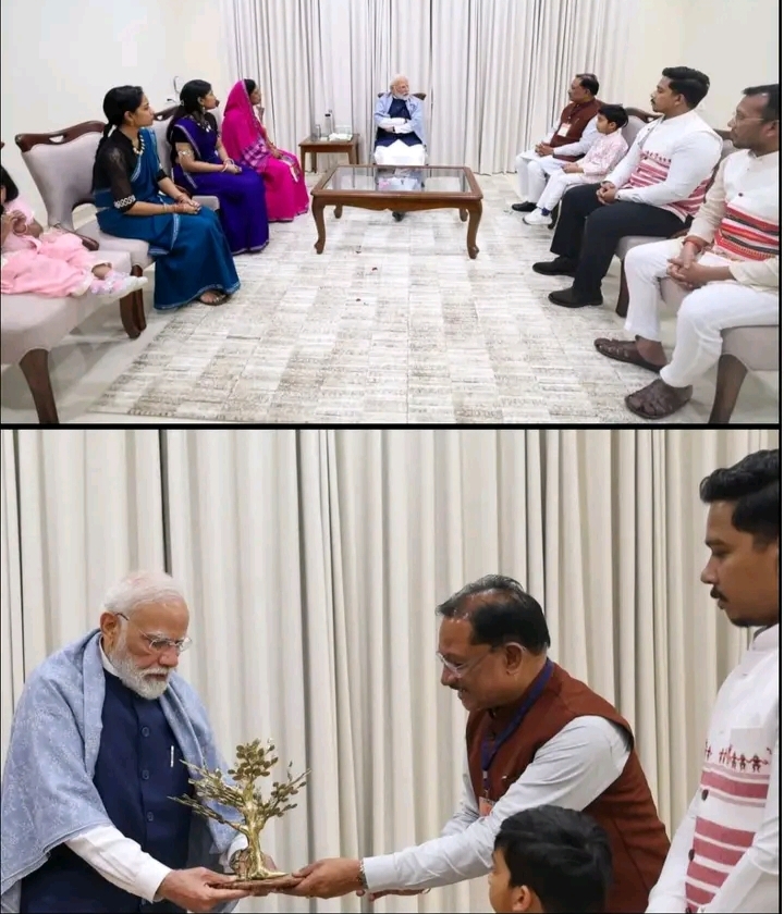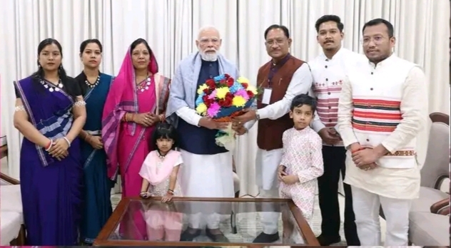 रायपुर। छत्तीसगढ़ के मुख्यमंत्री विष्णु देव साय अपने परिवार के साथ प्रधानमंत्री नरेंद्र मोदी से मुलाकात करने पहुंचे। इस मुलाकात की खास बात रही कि सीएम की पत्नी और दोनों बेटियाँ पारंपरिक छत्तीसगढ़ी वेशभूषा में नजर आईं, जिसने वहां उपस्थित सभी लोगों का ध्यान आकर्षित किया और राज्य की सांस्कृतिक पहचान को राष्ट्रीय मंच पर खूबसूरती से प्रदर्शित किया।