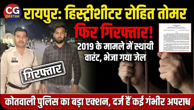रायपुर। राजधानी रायपुर के चर्चित हिस्ट्रीशीटर और सूदखोरी के आरोपों से घिरे रोहित तोमर को कोतवाली पुलिस ने एक बार फिर गिरफ्तार कर जेल भेज दिया है। यह कार्रवाई वर्ष 2019 के एक मामले में अदालत द्वारा जारी स्थायी वारंट के आधार पर की गई है।