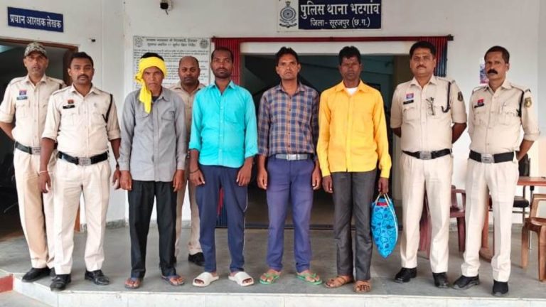 अतिरिक्त पुलिस अधीक्षक संतोष महतो और डीएसपी रितेश चौधरी के मार्गदर्शन में भटगांव पुलिस ने दबिश देकर चारों आरोपियों को गिरफ्तार किया —