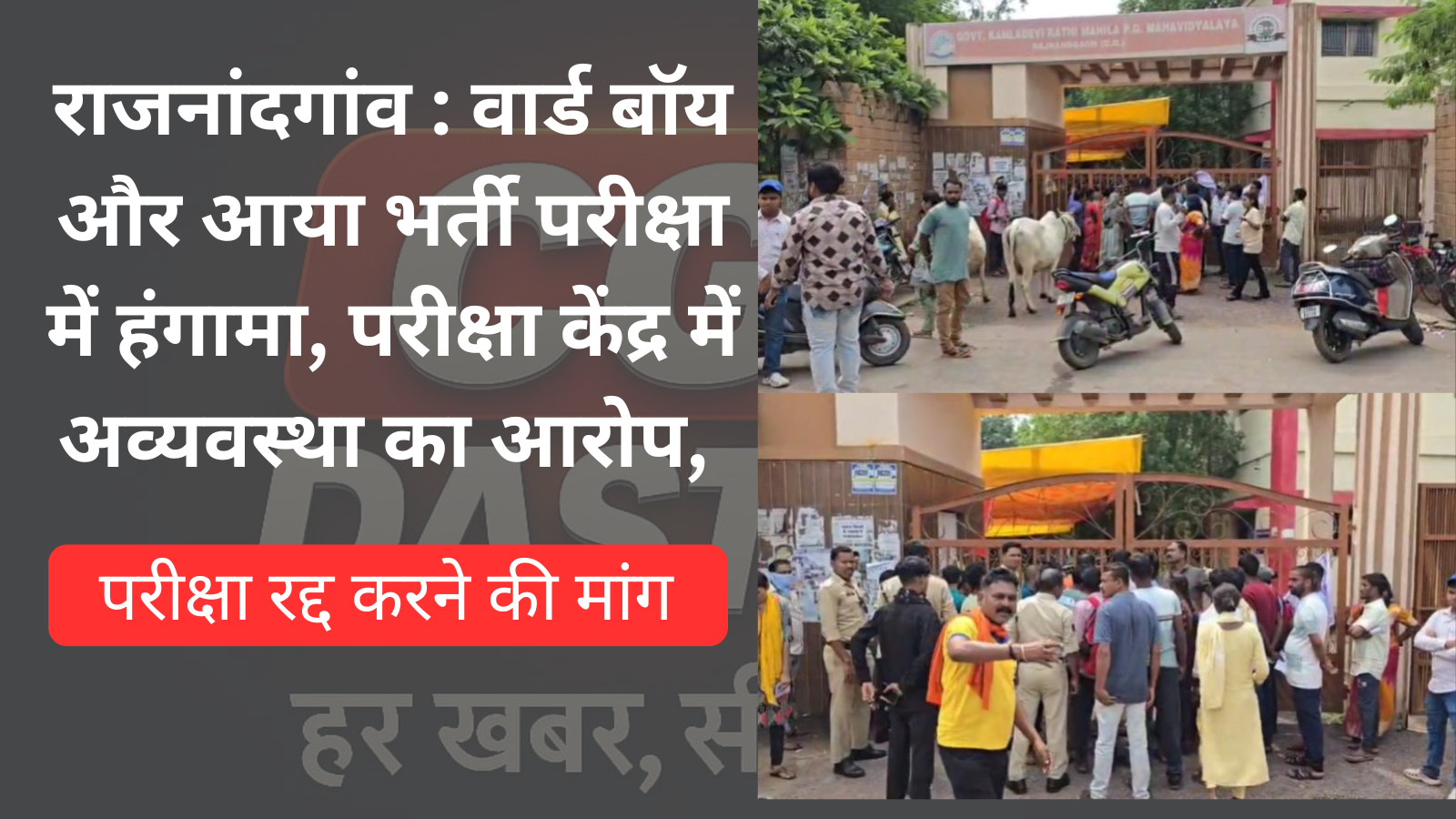 राजनांदगांव : वार्ड बॉय और आया भर्ती परीक्षा में हंगामा, कमला कॉलेज केंद्र में अव्यवस्था का आरोप, परीक्षा रद्द की मांग