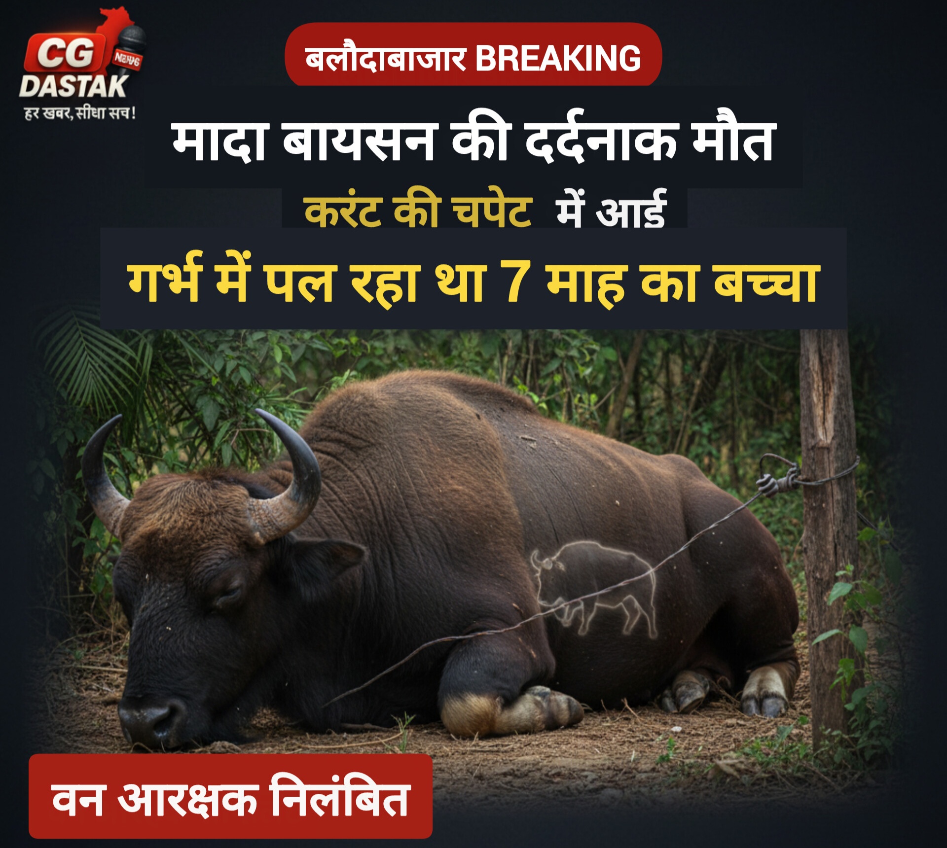 Balodabazar News: करंट की चपेट में आई मादा बायसन की मौत, गर्भ में था 7 माह का बच्चा – वन आरक्षक निलंबित