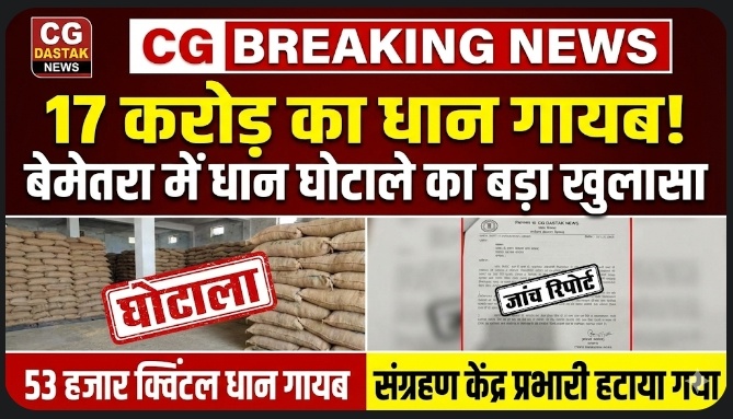 CG Breaking News : बेमेतरा में धान घोटाले का बड़ा खुलासा, 17 करोड़ का धान गायब