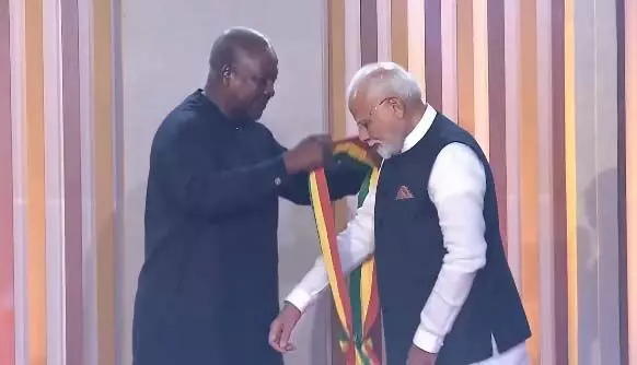 रायपुर। CM साय ने PM मोदी का वीडियो शेयर किया है, जिसमें उन्होंने लिखा, विश्व मंच पर फहरा रही भारत की कीर्ति पताका। यशस्वी प्रधानमंत्री श्री नरेंद्र मोदी जी को घाना के सर्वोच्च नागरिक सम्मान, “ऑफिसर ऑफ द ऑर्डर ऑफ द स्टार ऑफ घाना” से अलंकृत किया जाना हर भारतवासी के लिए गौरव का क्षण है। यह सम्मान न केवल आदरणीय प्रधानमंत्री जी की दूरदर्शी नेतृत्व क्षमता का वैश्विक सम्मान है, बल्कि भारत की बढ़ती प्रतिष्ठा का भी प्रमाण है। माननीय प्रधानमंत्री जी को इस गरिमापूर्ण सम्मान के लिए कोटिशः शुभकामनाएं एवं हार्दिक अभिनंदन।