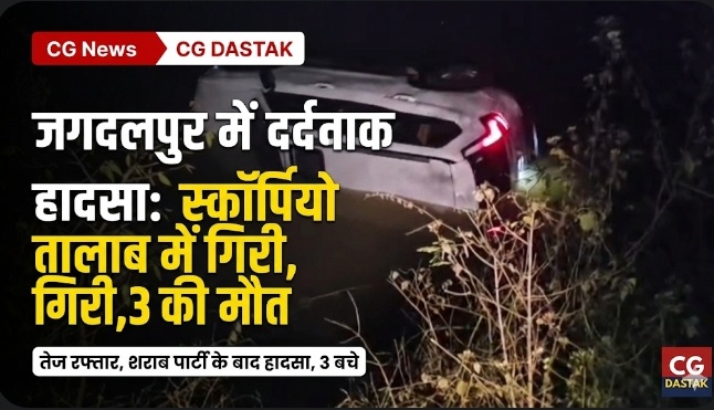 CG News : जगदलपुर में दर्दनाक हादसा, तेज रफ्तार स्कॉर्पियो तालाब में गिरी, 3 युवकों की डूबने से मौत
