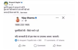 पूर्व सीएम ने फेसबुक वाल के साथ ही एक्स पर ही कुछ इसी तरह की बात लिखी है। फेसबुक वाल पर तो फ्रेंड्स, फालोअर्स और समर्थकों के कमेंट्स की बाढ़ सी आ गई है। यह एकतरफा नहीं मामला दोनों तरफ बराबरी का है। वार हो रहा है और उसी अंदाज में पलटवार भी। छत्तीसगढ़ में कोई मुद्दा हो और उस पर बहस ना हो ऐसा भला हो सकता है।