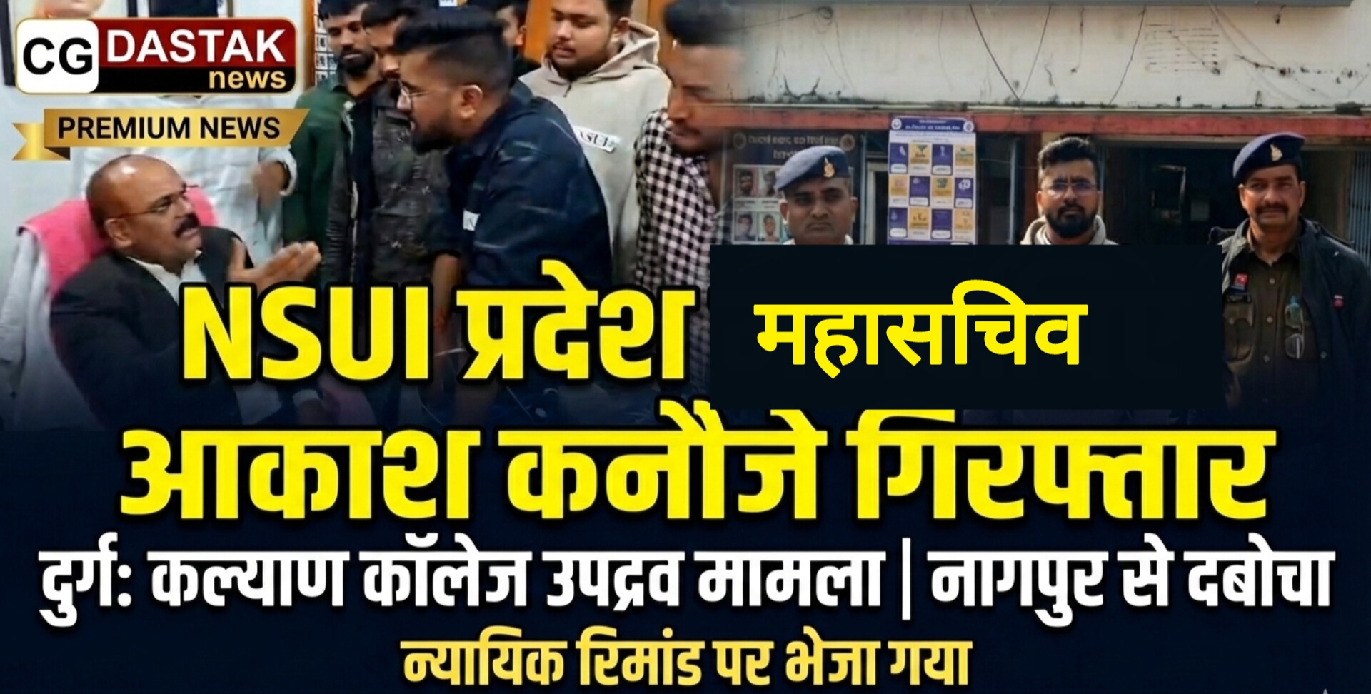 Durg Breaking: कल्याण कॉलेज उपद्रव मामले में फरार NSUI प्रदेश महासचिव आकाश कनौजे नागपुर से गिरफ्तार, न्यायिक रिमांड पर भेजा गया