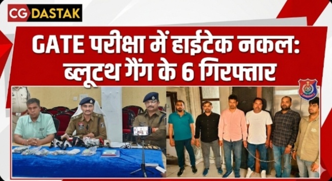 रायपुर। राष्ट्रीय स्तर की GATE परीक्षा में हाईटेक तरीके से नकल कराने की साजिश का रायपुर पुलिस ने पर्दाफाश किया है। पुलिस कमिश्नरेट की संयुक्त टीम ने कार्रवाई करते हुए इस मामले में 6 आरोपियों को गिरफ्तार किया है। सभी आरोपियों के खिलाफ थाना डीडी नगर में मामला दर्ज कर न्यायिक रिमांड पर भेजा जा रहा है।