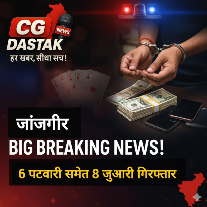 Janjgir Big News: 6 पटवारी समेत 8 जुआरी गिरफ्तार, पटवारी संघ का प्रदेशाध्यक्ष भी शामिल