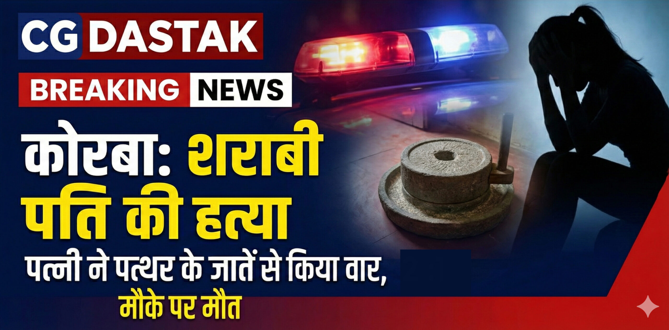 कोरबा। कटघोरा थाना क्षेत्र के तुमान गांव में देर रात घरेलू विवाद खूनी संघर्ष में बदल गया। शराब के नशे में धुत पति और पत्नी के बीच कहासुनी इतनी बढ़ गई कि मामला मारपीट तक पहुंच गया। इसी दौरान पत्नी ने पत्थर के जातें से पति के सिर पर जोरदार वार कर दिया, जिससे उसकी मौके पर ही मौत हो गई।