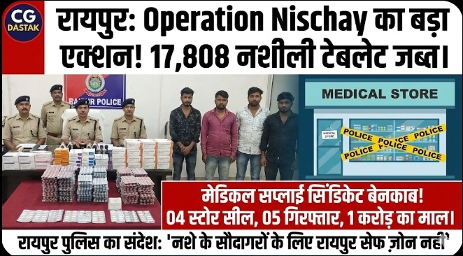 रायपुर पुलिस ने नशे के खिलाफ चलाए जा रहे विशेष अभियान “ऑपरेशन निश्चय” के तहत बड़ी कार्रवाई करते हुए मेडिकल दवाइयों की आड़ में चल रहे नशीली टेबलेट सप्लाई सिंडिकेट का पर्दाफाश किया है। इस कार्रवाई में 04 मेडिकल स्टोर संचालक और 01 मेडिकल रिप्रेजेंटेटिव (MR) समेत कुल 05 आरोपियों को गिरफ्तार किया गया है।