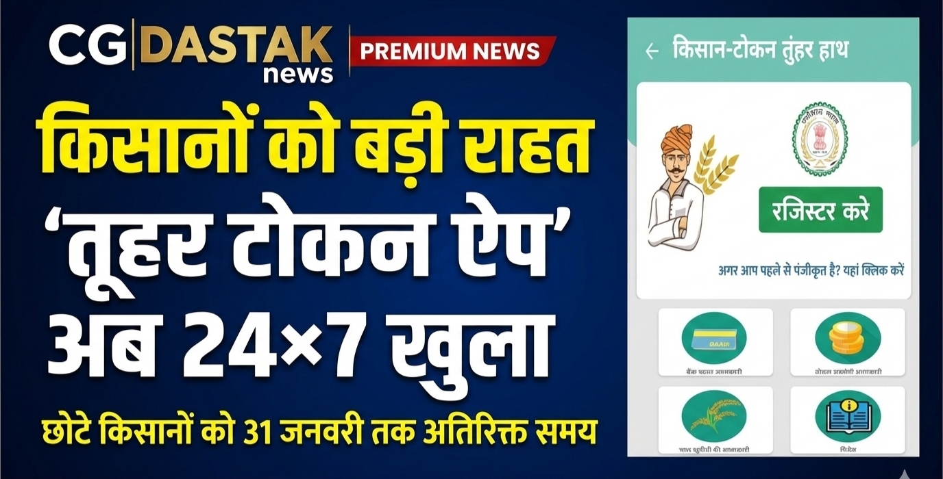 Raipur: किसानों को बड़ी राहत — ‘तूहर टोकन ऐप’ अब 24×7 खुला, छोटे किसानों को 31 जनवरी तक मिलेगा अतिरिक्त समय