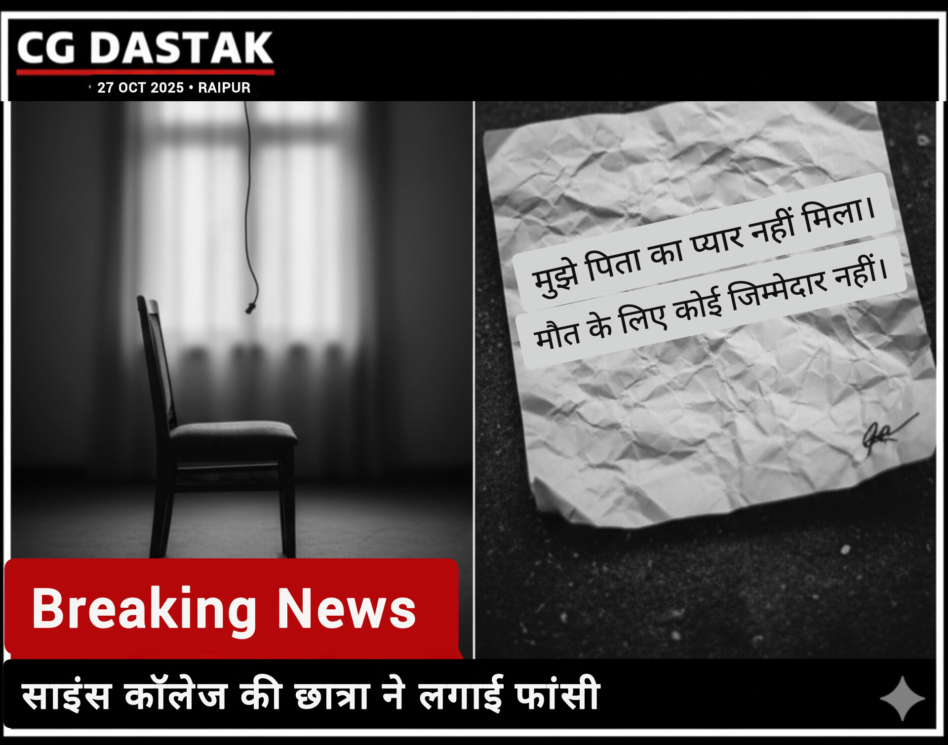 सुसाइड नोट बरामद हुआ, लिखा—‘मौत के लिए कोई जिम्मेदार नहीं’
